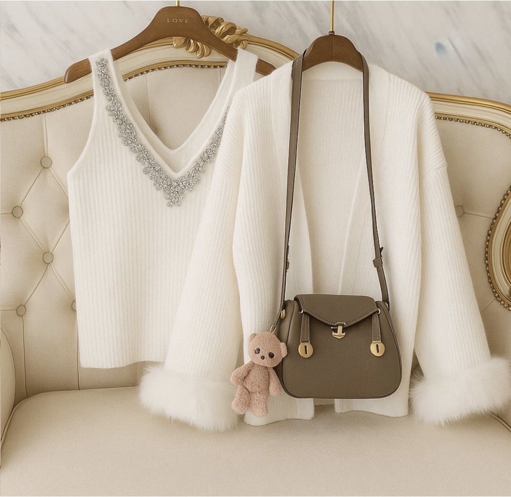 This cardigan features a ribbed knit texture with plush fur detailing on the sleeves for a cozy, premium feel. Perfect to layer over tops, dresses, or co-ord sets, it’s ideal for winter outings, casual gatherings, travel days, or everyday wear.