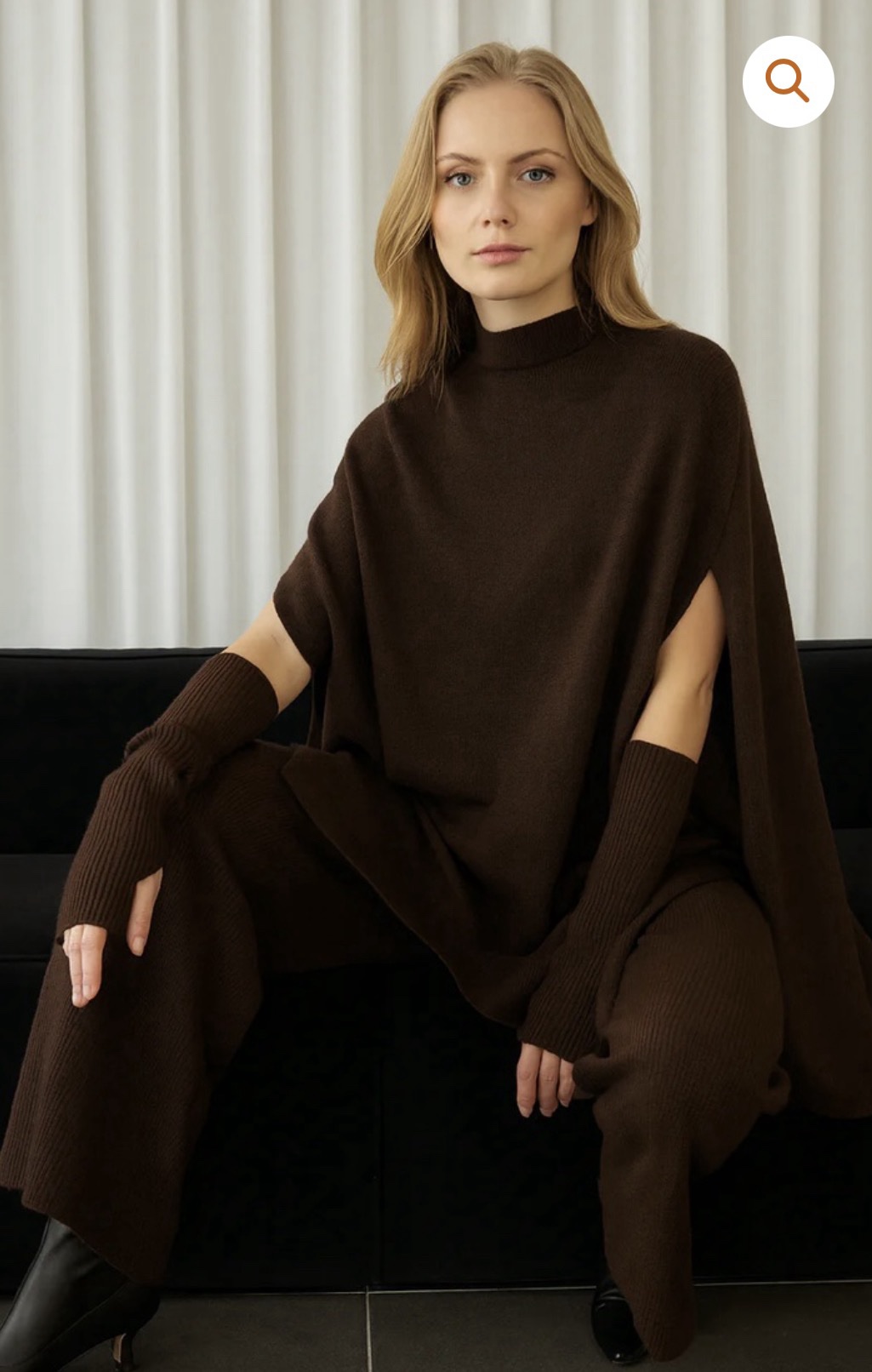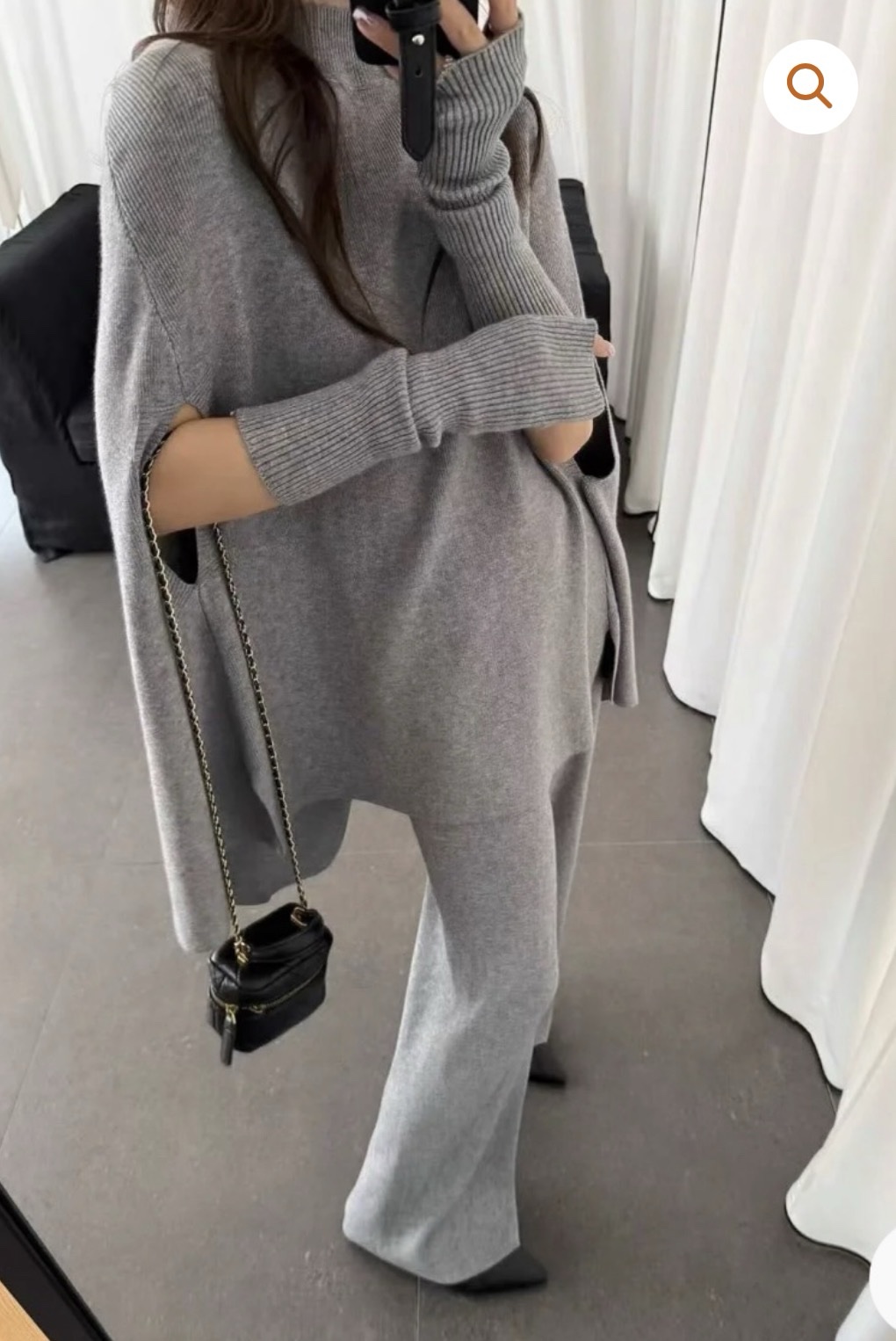 Designed with a relaxed silhouette and soft knit fabric, this ensemble offers a cozy yet refined look for any occasion.