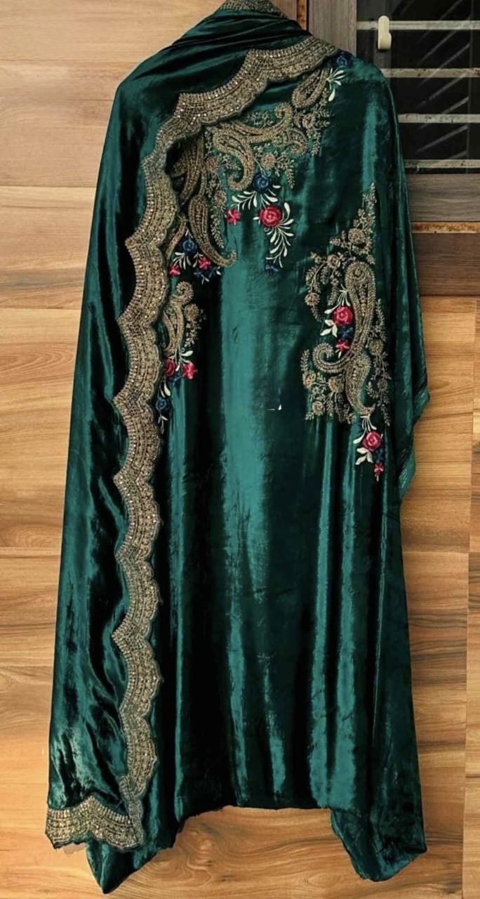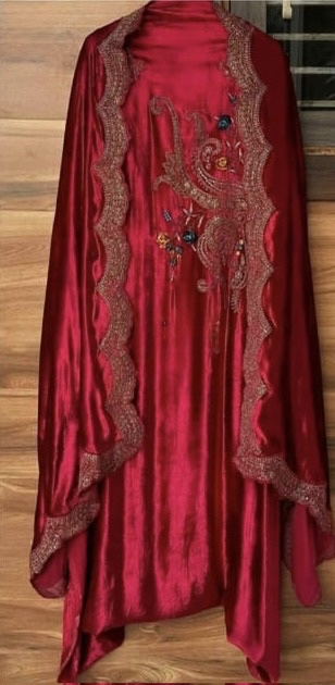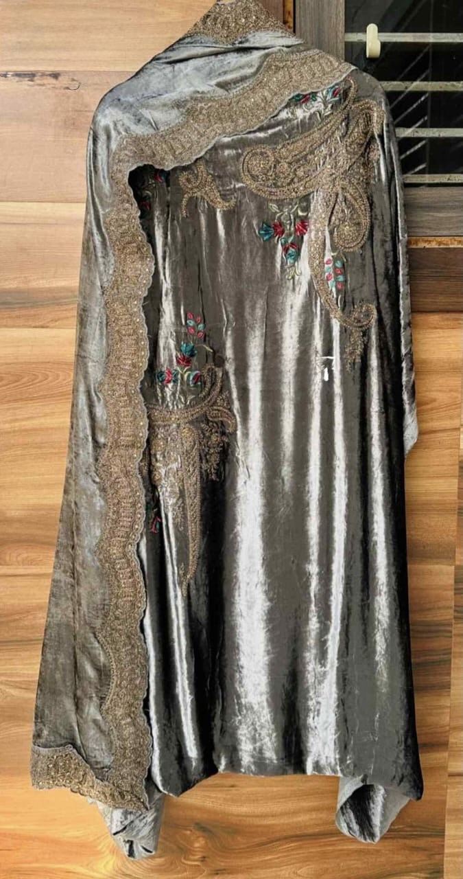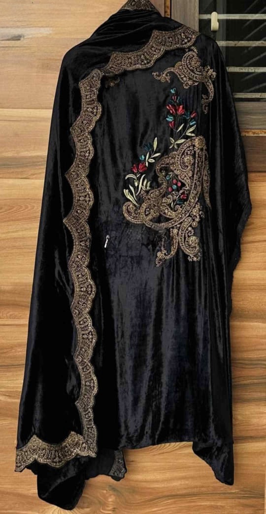 Pure velvet designer unstitch shirt with beautiful embroidery
